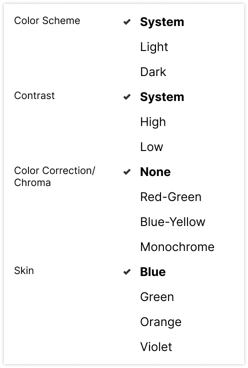 For color contrast the same mechanics are available as for color schemes. Unlike color schemes, there is no strong marketing term behind to give this feature a mandate for implementation.