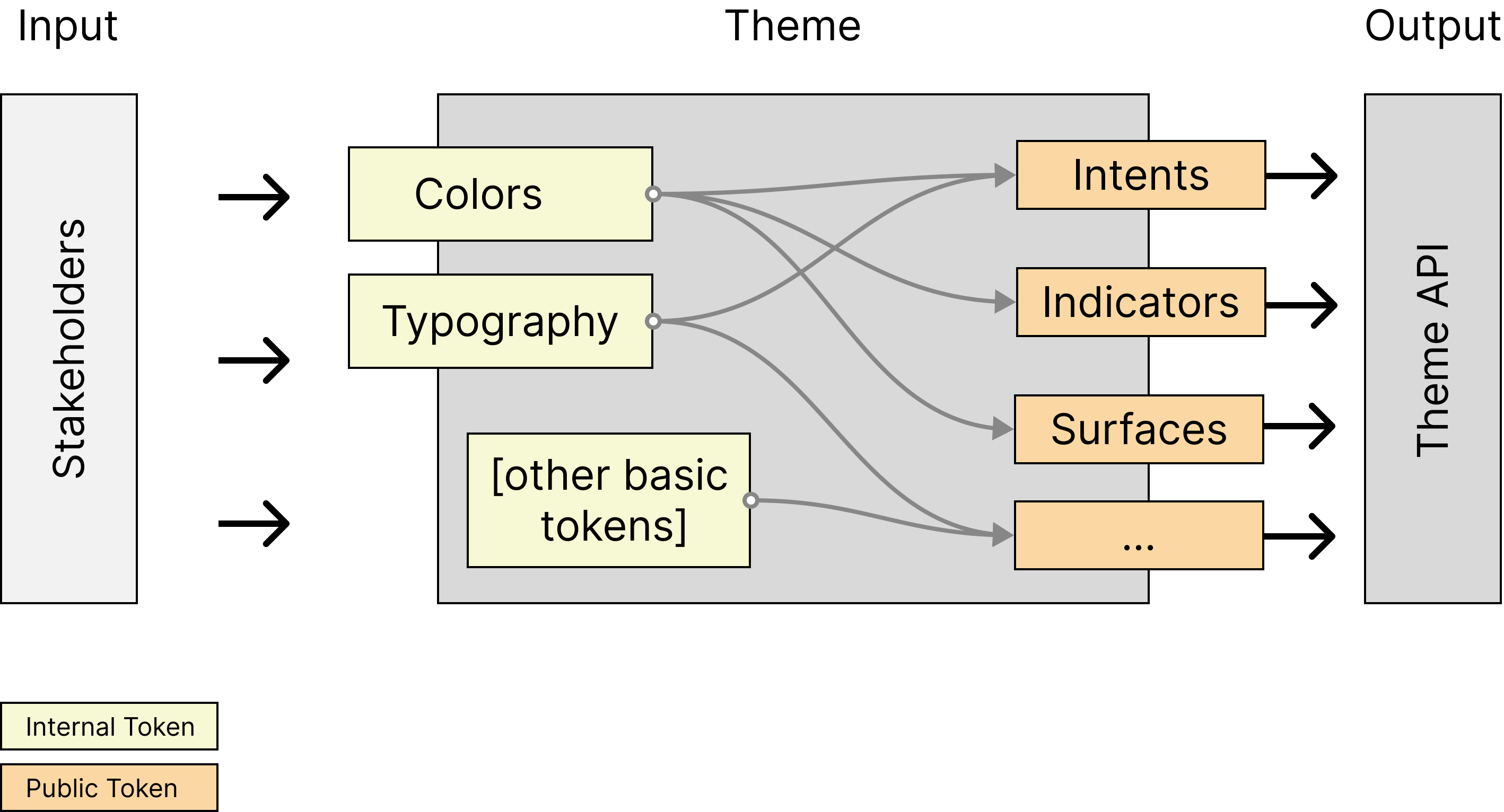 - A theme API is a contract between a product (token consumers) and a theme (token designers)